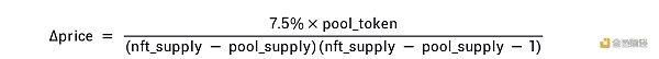 ERC721P還有一個機制在于每次Swap都需要錨定價格7.5%的手續費,其中一半會手續費會進入合約增加NFT的錨定價格,另外一半手續費則會打入社區國庫,用作NFT的持續運營,比如ChainLink的預言機續費,項目空投等等。這個機制的出現,NFT的持有者越晚退出,退還的代幣越多,所得到的回報越高。同理,當池子中有NFT可以swap出來,越早兌換,所需要的Token越少。詳細公式如下:
