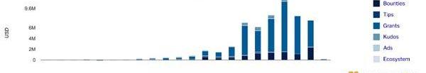 每個季度,Gitcoin社區都會將價值300萬美元的資金分配給一個匹配池,根據眾籌活動的結果進行分配。在2022年第二季度,Gitcoin促成了740萬美元的價值轉移。