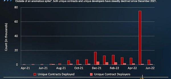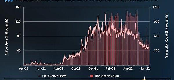 部署的唯一合約、每日活躍用戶和交易數量隨著市場狀況而下降。盡管如此,這些數字仍然比去年同期高很多。