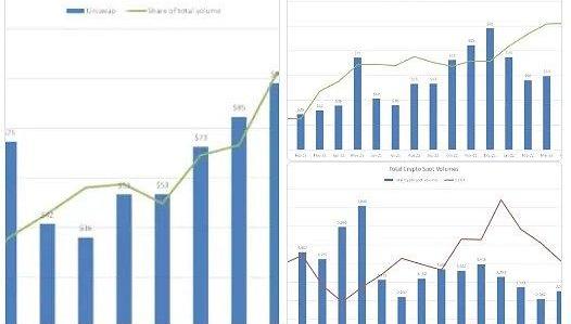 來自去中心化交易所的挑戰:去中心化交易所?Uniswap?在其平臺上有超過1000枚代幣可用,交易費只有0.3%。DEX?一直在搶奪加密交易市場份額,而且這種趨勢可能會持續下去。