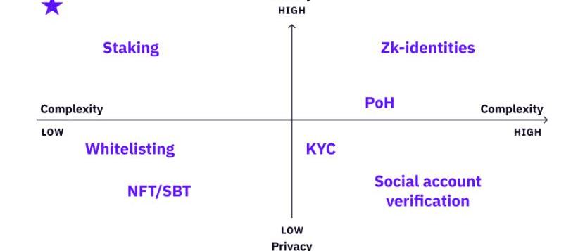 目前有一些現有/即將推出的方法:KYC、白名單、社交賬戶驗證、NFT/靈魂綁定代幣和?zk-identity/零知識證明的身份驗證。