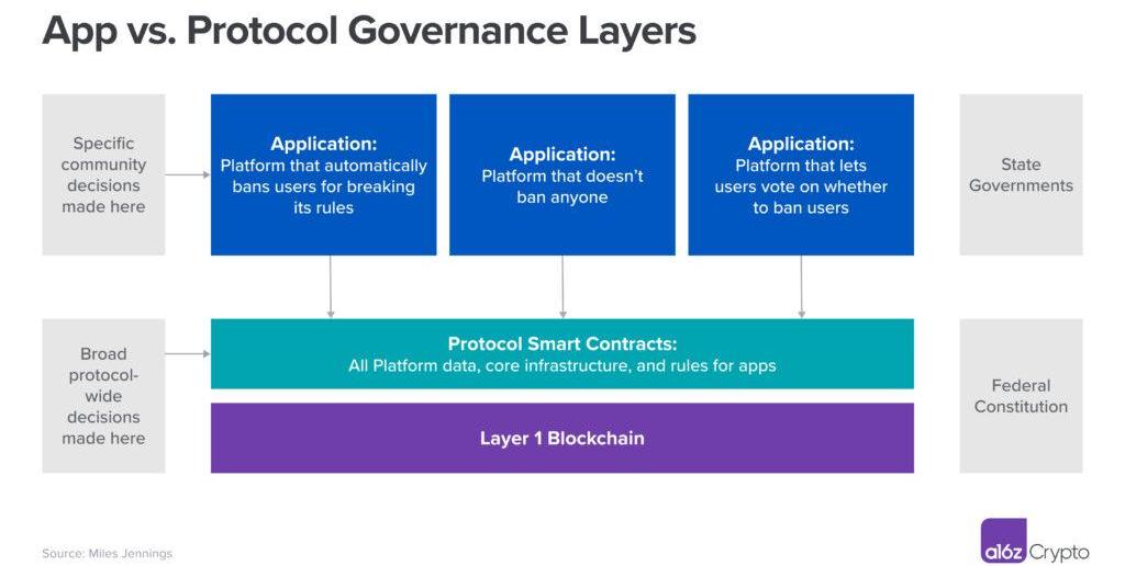 ●最后,協議層面的治理可能是必要的,以便鼓勵應用程序之間持續競爭的方式更新協議,因為這種競爭對于生態系統的長期合法性和健康是必要的。