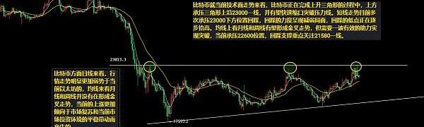 7月19日比特幣(BTC)行情分析解讀:比特幣方面日線來看,行情走勢明顯更加弱勢于當前以太坊的,均線來看月線和周線并沒有在形成金叉走勢,當前的上漲更加傾向于市場復蘇和當前市場投資環境的平穩帶動而產生的。就當前技術面走勢來看,比特幣正在完成上升三角形的過程中,上方承壓三角形上沿23000一線,并有望快速縮口突破壓力線。短線走勢目前多次承壓23000下方位置回踩,回踩的力度呈現減弱局面,回踩的低點正在逐步抬高。均線上看月線和周線有望形成金叉走勢,但需要一波有效的助力實現突破,當前承壓22600位置,回踩支撐重點關注21580一線。