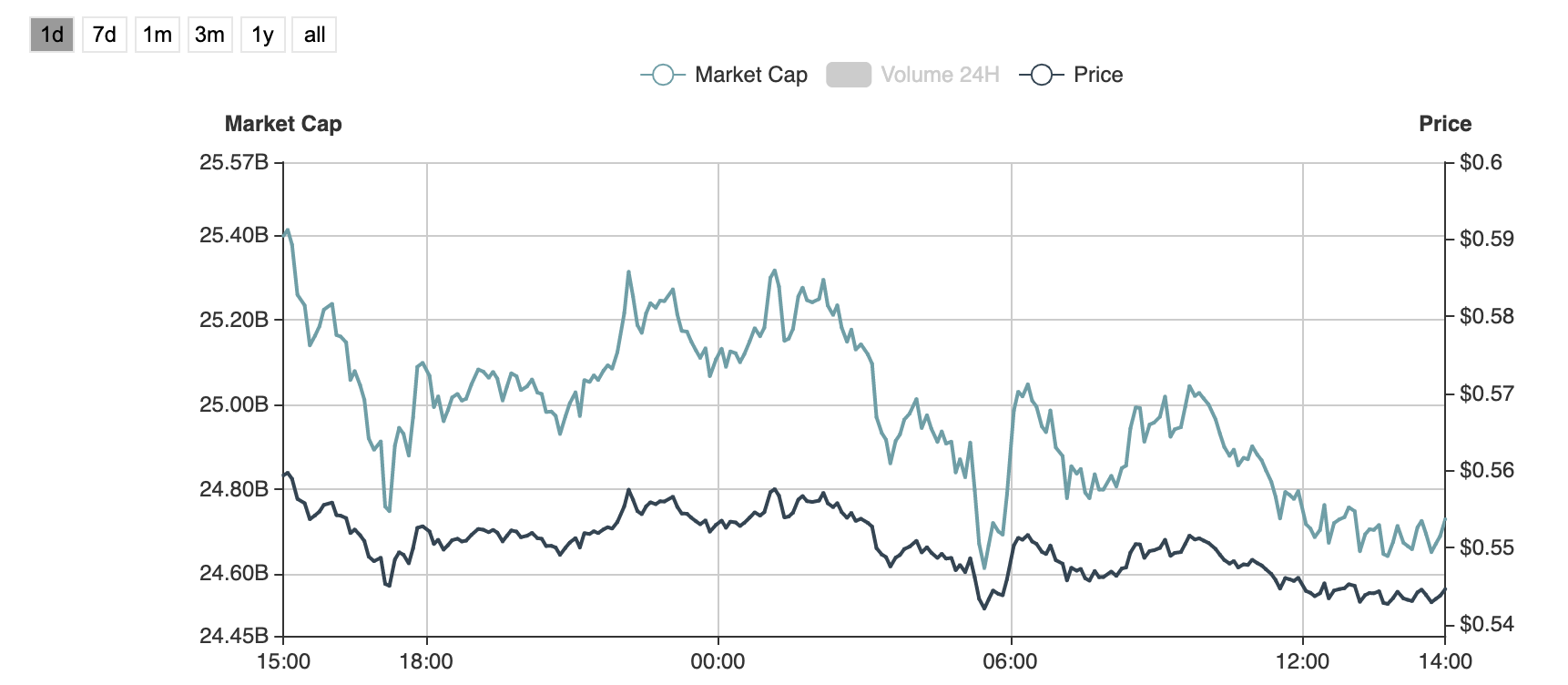 加密貨幣市值排名第7的XRP當前價格為0.544231美元,總市值247.1億美元,24小時內漲幅為-2.47%。最高價格為0.559704美元,最低價格為0.542095美元。