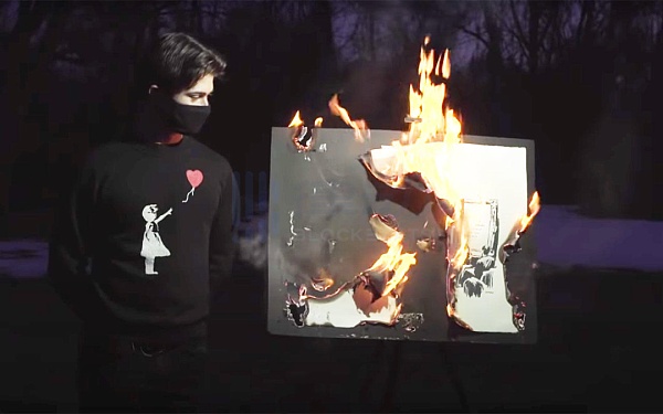 其實可以這樣理解,就像《氣球女孩》在蘇富比拍賣時變成了「另一件藝術品」一樣,這幅《白癡》在紐約布魯克林某片空地上灼灼燃燒的同時,也變成了「另一件藝術品」。