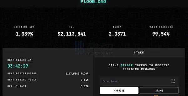 質押者可以使用FloorDAO協議質押$FLOOR,以從協議中獲得變基獎勵$sFLOOR,每次rebase都會自動累積獎勵。