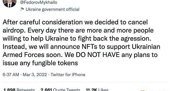2022年2月,在俄羅斯入侵烏克蘭后不久,烏克蘭政府迅速決定接受加密貨幣形式的捐款,以利用加密貨幣領域的巨額資金,去輔助他們做一些事。