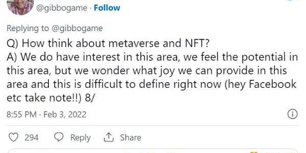 接下來是任天堂,游戲公司領域的龐然大物,我認為如果有任何將實體收藏品轉變為數字收藏品的機會,那將是來自任天堂。在一次問答中,DavidGibson?說:"我們確實對這個領域有興趣"。