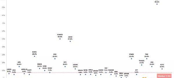平均而言,項目將其Token供應的7.5%用于空投?-通過使用中位數計算,以避免異常值。