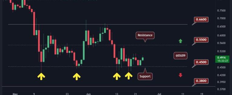 盡管卡爾達諾在0.45美元的關鍵支撐位顯示出巨大的實力,但由于迄今為止未能以顯著方式反彈,因此對其復蘇感到失望。因此,它的價格在過去7天內僅上漲了4.3%,比XRP等山寨幣低五倍。