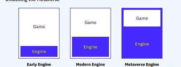 然而,在考慮元宇宙時,引擎扮演著更重要的角色。為了打破將一款游戲或體驗與另一款游戲或體驗隔開的墻,游戲可能會被封裝并托管在引擎中,而不是相反。在這個擴展的視圖中,引擎變成了平臺,這些引擎之間的通信將在很大程度上定義我所認為的共享元宇宙。