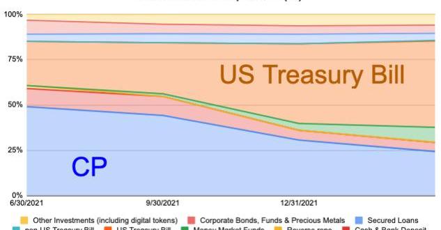 2022Q2的報告還沒出來,不過根據Tether技術長@paoloardoino的講法,他們在2022/3之前又贖回了84億美金的CP,2022/5前USDT發行量沒太大改變,合理猜測是轉倉到其他資產去了,這意味著CP占比又下降到了13%左右。