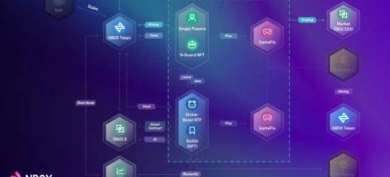 NBOX,是一種新型的去中心化游戲公會平臺,基于以BSC區塊鏈技術,由玩家部分擁有和運營,通過玩游戲賺取NBOXTOKEN代幣。為區塊鏈應用生態里的玩家提供一個聚集平臺,創新使用DAO2.0治理,通過社交、NFT、GameFi等內容聯動,攜手暢游元宇宙。在這里NBOX提到了DAO2.0的概念,眾所周知,DAO=共識+通證+智慧合約+智慧算法,是在此基礎上賦予了AI自理,更加智慧化,能擺脫人的不良干擾,真正實現治理最小化和可信的去中心化智能生態。