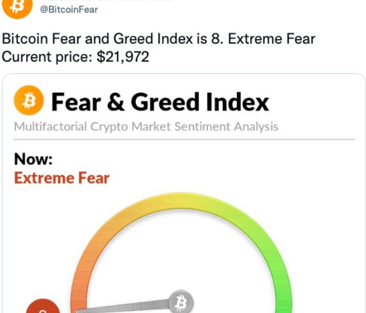 比特幣恐懼和貪婪指數達到了8,表明極度恐懼。雖然市場已經連續第56個月處于極度恐懼的區域,但自2020年3月以來從未出現過這一水平。