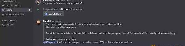 8月,一個「匿名團隊」創建了YearnFinance的分叉項目WifeyFinance,?麻吉大哥、LeoCheng和WilsonHuang都恰好是WifeyDiscord頻道的第一批成員。TTransaction記錄顯示,Wifey的部署者多次向WilsonHuang匯款。四天后,WifeyFinance被拋棄。