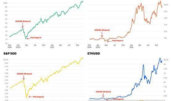 BTC、ETH和納斯達克均在11月見頂,標準普爾500指數在12月底見頂,那么過去的兩個月里經濟發生了什么變化?要了解這種市場低迷,最好從股票和加密貨幣在2020年經歷的歷史性牛市開始時開始分析。