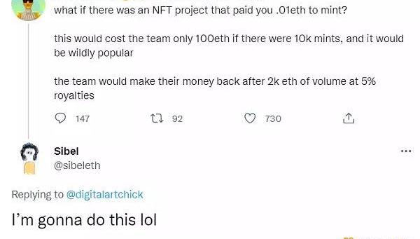 「如果有一個NFT項目愿意支付給你0.01ETH去mint會怎么樣?」