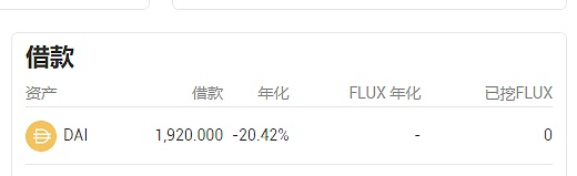 完成存款后可以在“我的數據”看到借款DAI數量為1920,目前已挖FLUX數量為0。