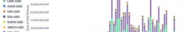 以dYdX在L2上交易量較大的BTC/USD交易對為例,據官方統計,2022年5月29日~6月4日期間,一周時間的總交易量為17.7億美元。而高點時,2022年2月13日-2月19日期間,BTC/USD的交易量為172.7億美元,目前已下降89.8%。