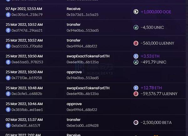 在收到6百萬枚Token的6小時后,他們轉移到另一個標記地址,并已分批轉移約700,000枚Token到幾個未標記的錢包,最后到達Binance存款地址,大概是為了賣出;