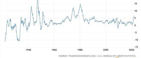 全美基于CPI指數的歷史通貨膨脹率