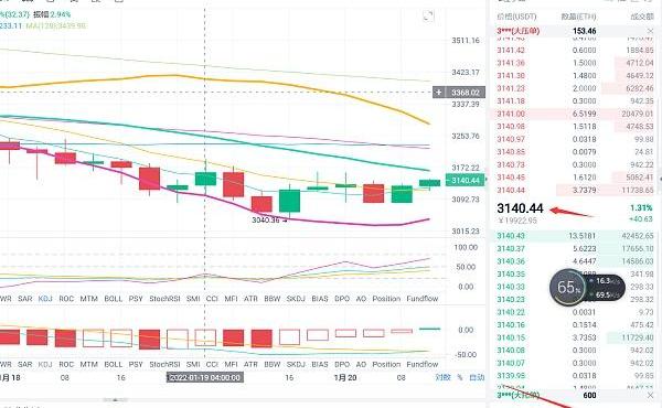 四小時級別圖看,以太坊在昨日下午四點開線后再次下行至3040附近觸底反形成動蕩上行的趨勢運行至3160附近受上軌壓制回落至3130附近徘徊運行,且多頭強勢走出一波三連陽的趨勢運行,而在今日凌晨四點開線后再次上行至3130附近再次受上軌壓制回落至3080附近觸底反彈至3150附近承壓回落至3130附近徘徊運行,且有望收取一波二連陽的趨勢運行,從早間八點開線后至午間開線后有形成動蕩上行的趨勢運行,如若行情上行能站穩中軌上方運行,行情則會運行至上軌上方超買區運行,再看布林帶兩端開口,上軌在今日凌晨開線后再次呈拐頭向下運行,MA5均線在凌晨四點開線后受行情上行影響呈拐頭向上穿過MA10均線在行情下方運行,且有一定的支撐力度運行,MA10均線在昨日開線后呈大幅度拐頭向下運行至早間八點開線后穿過MA5均線呈拐頭向上運行,且有二次支撐行情上行力度運行,而行情在中軌下方超買區運行,下軌在早間八點開線后呈拐頭向上運行且與上軌形成窄口運行,附圖,下方MACD綠色多頭能量柱呈縮量運行,MACD快線DIF在午間開線后穿過慢線向上運行,KDJ三線更是粘合呈金叉向上運行,綜合盤面指標來看,以太坊目前盤內空頭表現較為強勢,且有一定的下行力度,可以考慮在3110-3070附近止跌給到一個中短線線多單布局,下方可執行把握150-200點以上空間。