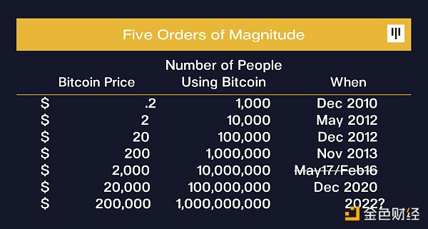 比特幣每增加百萬用戶,其價格上漲200美元。?除2016年2月有所延遲外,其他均如此。