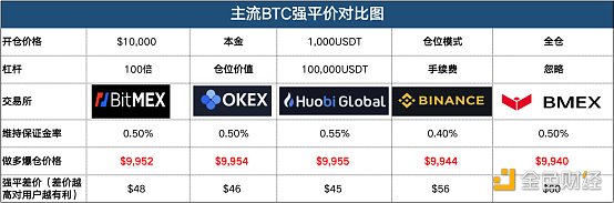 以BMEX為例,其BTC/USDT 永續合約交易對(100X)維持保證金率為0.5%,風險限額的遞增值更加合理情況下,按照BTC?10000USDT的價格,全倉做多,爆倉價格會比其其他所有交易所,往用戶更有利的方向低5-15美金。保證金率優勢凸顯。