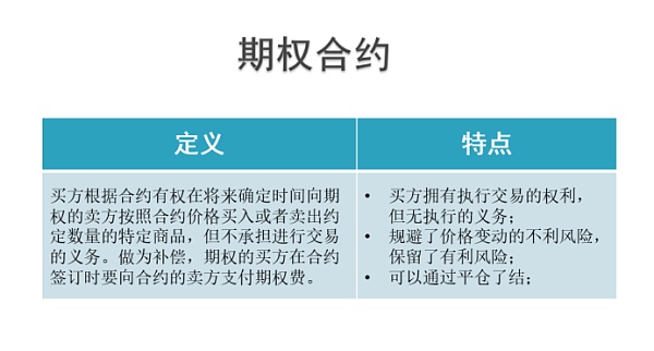 3、期權則是再期貨的基礎上實現了未來可以不行權的可能;