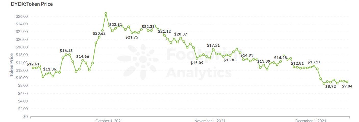 其作為DeFi衍生品龍頭,也是ZKRollup技術最早采用者之一。整體的數據表現:繼8月份以來,TVL持續上漲的態勢穩住Layer2項目的前2名,當前TVL為9.76億美元,其Token(DYDX)價格有所下降趨勢,當前為9.04美元,市值為5.7億美元。