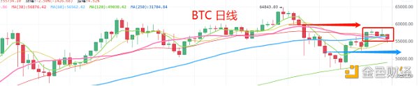 BTC 短期支撐位 54000~54500,短期壓力位 56700~57300。