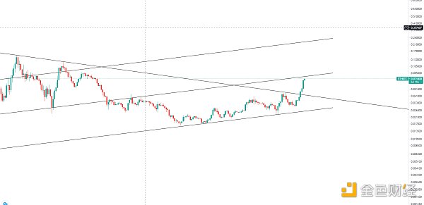 EOS/BTC走勢也是放量突破長期壓制線,趨勢反轉后續也有望走出跑贏大盤的走勢,短期支撐8.8美金,趨勢支撐7.9美金,一旦回落,逢低布局為主。