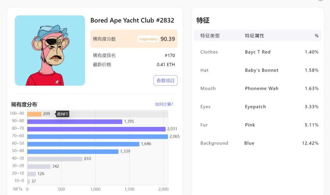 圖7:NFTGO針對BAYC#2832的稀有度評分細節)