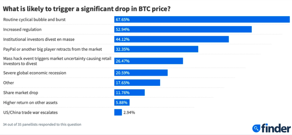 比特幣支持者和加密愛好者認為,加密貨幣經濟將繼續蓬勃發展。Finder征詢了35名金融小組成員關于今年BTC將升至多高以及牛市可能何時結束的專家意見。