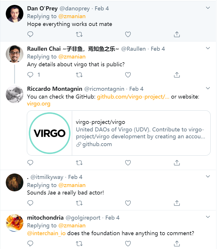 如果Cosmos不能如期發布IBC協議,或將對使用Cosmos的項目以及其頭部跨鏈公鏈地位產生巨大影響。其實對此的擔心大多來源于社區,目前暫無更多更新的社區消息,但從之前的社區消息判斷,Manian暫時表示的目標仍是完成開發,而本月初Jae事件發酵時,社區支持Manian更多,眾多人士也表示了對Cosmos開發團隊帶領人(也就是Manian等)的敬佩和信任。