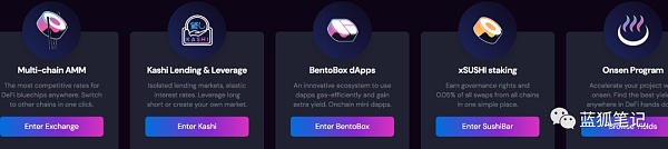 目前Sushiswap的拼圖中包含了DEX(多鏈AMM,不僅有以太坊,也有BSC、Heco等)、Kashi借貸和杠桿、BentoBox、眾籌發行MISO等。其中的一些拼圖還是有自己想法的。