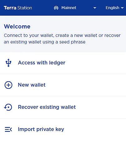 打開 Mirror 官網 https://terra.Mirror.finance/,下載安裝Terra station谷歌插件,安裝后,根據提示,創建或導入一個 Terra 錢包。