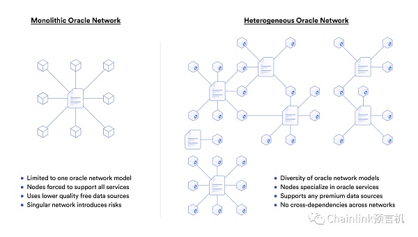 Chainlink是一個異構預言機網絡,可以靈活定制預言機網絡