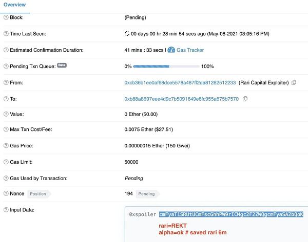 XRP/HKD+0.08%北京時間 5 月 8 日深夜,DeFi 協議 Rari Capital 的攻擊者們在眼看著就快得手的 600 萬虛擬資產被攔截后,在區塊上留下一段話: