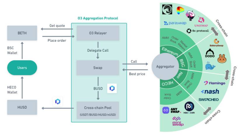 XRP/HKD-7.52%O3 Swap 是由 O3 Labs 團隊推出的跨鏈聚合交易協議,通過聚合以太坊、BSC、Neo、Heco 等鏈上 DEX 流動性,基于跨鏈互操作協議 Poly Network 構建跨鏈交易池,實現加密資產一鍵兌換。