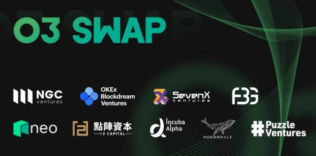 4 月 15 日,O3 Swap 宣布完成 200 萬美元融資,參投機構包括 NGC Ventures、 OKEx Blockdream Ventures、SevenX Ventures、FBG Ventures、Neo Eco Fund、BTC12 Capital、Incuba Alpha、Moonwhale Ventures、Puzzle Ventures、本末基金、AC Capital 等。