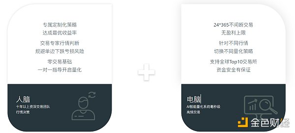 其次,與市場上很多單純賣量化機器人不同,他們等于只是提供量化工具,而IBTC量化是“人腦+電腦”,由資深交易團隊進行行情分析與AI智能量化系統相結合,實現高頻交易。