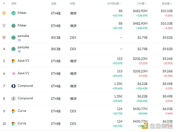DeFi項目鎖定資產前十排名及鎖倉量,數據來源:Debank