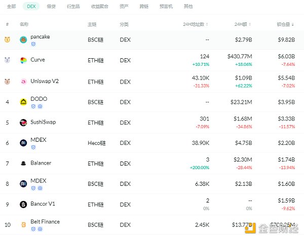 過去24小時去中心化交易所的交易量數據來源:Debank