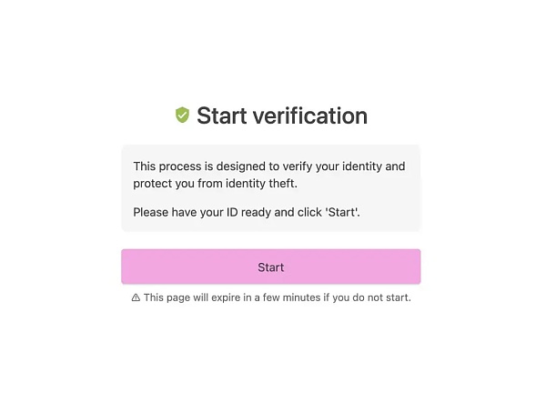 5、再次輸入此前注冊的用戶證件信息進行確認,填好后點擊“Save & Continue”,再點擊“Start”進入身份驗證流程。