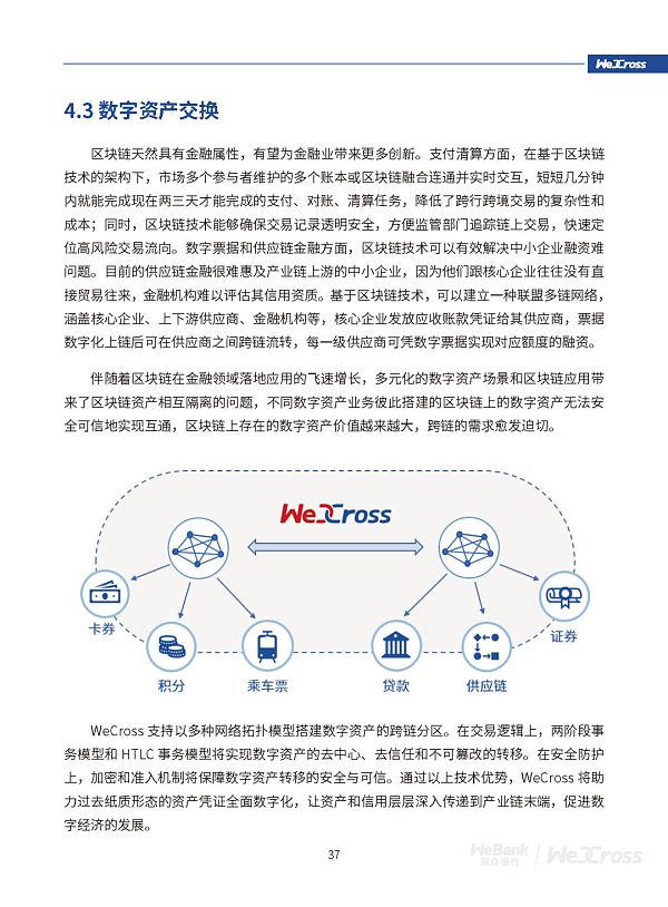 目前,WeCross已經圍繞司法跨域仲裁、物聯網跨平臺聯動、數字資產交換、個體數據跨域授權等具體應用場景提出了針對性解決方案。未來,WeCross將會作為分布式商業區塊鏈互聯的基礎架構,持續促進跨行業、機構、地域的跨區塊鏈價值交換和商業合作,推動區塊鏈應用生態的深度融合發展。