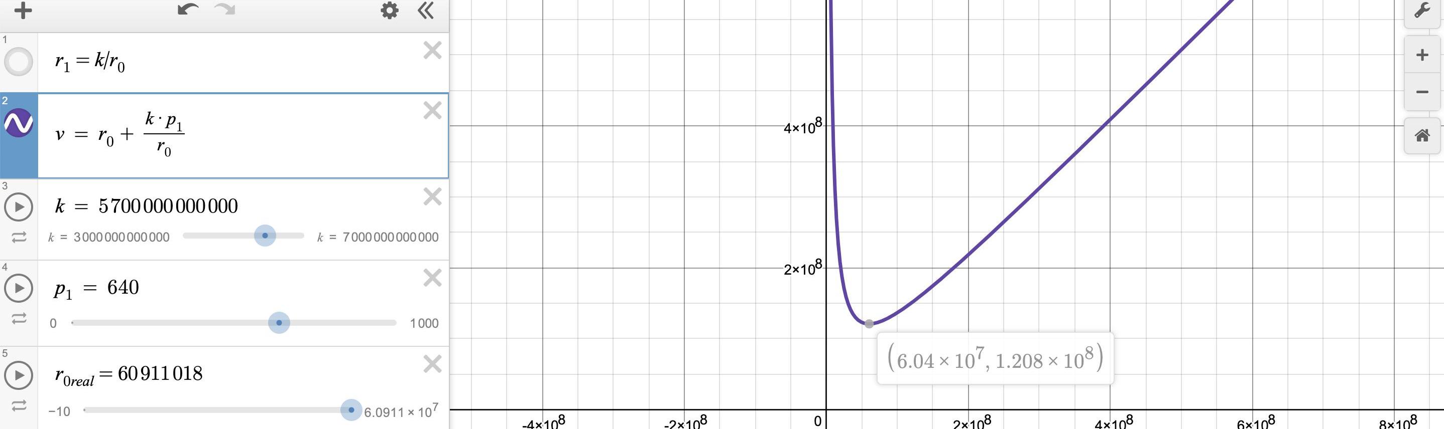 計算得到的k值大概是5.7*10^12,而兌換前p(ETH,DAI)的價格為640左右,而在受攻擊前p(ETH,USDC)跟p(ETH,DAI)的值應該是差不多的。因此根據給定的k和p(ETH,USDC)可以繪制LP的價格與DAI的數量的函數關系曲線圖,如下所示: