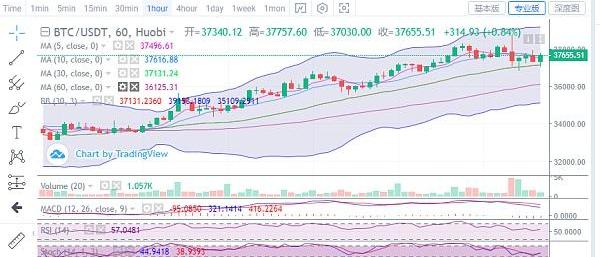 1900/1/1 0:00:00行情觀點: 大餅相對于以太沒有那么強勢,近期的行情圍繞區間走寬幅震蕩,小時級別來看,大餅早間8:00短線拉升突破上軌壓制,隨后短線小幅回調,觸底延續震蕩上行,目前觸壓36827.52一線回調.