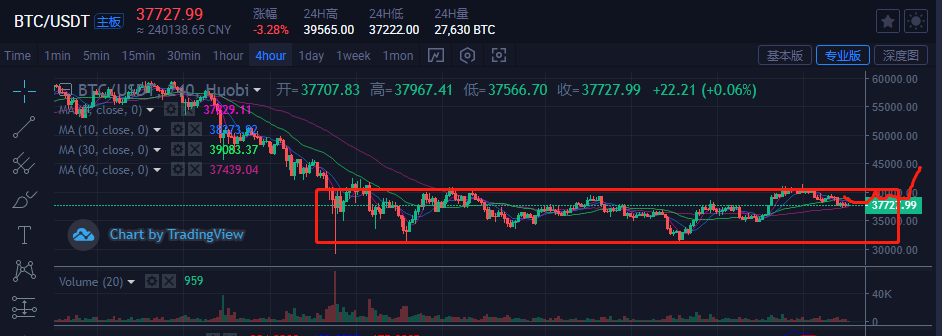 日線回踩30日線,37000重要關口不能被有效跌破,否則建議先減倉出來。整體上仍然看震蕩走高,不見兔子不撒鷹。
