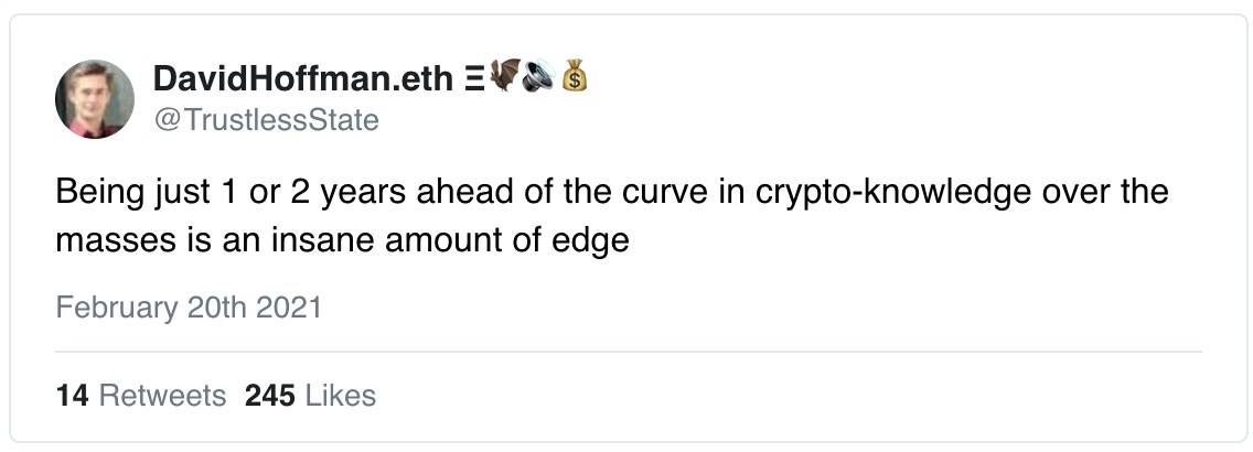2020 年 DeFi 夏季創造了大量財富,其中大部分是屬于已進入該行業的人,他們關注到了DeFi 夏季發生的原因,以及知道如何應對,他們是在這個行業做得最好的人,以及那些在未知的未來事件發生之前能夠很好地抓住有利時機的人。如果你離開后回到這個行業,你就落后了,你會失去很多的機會。